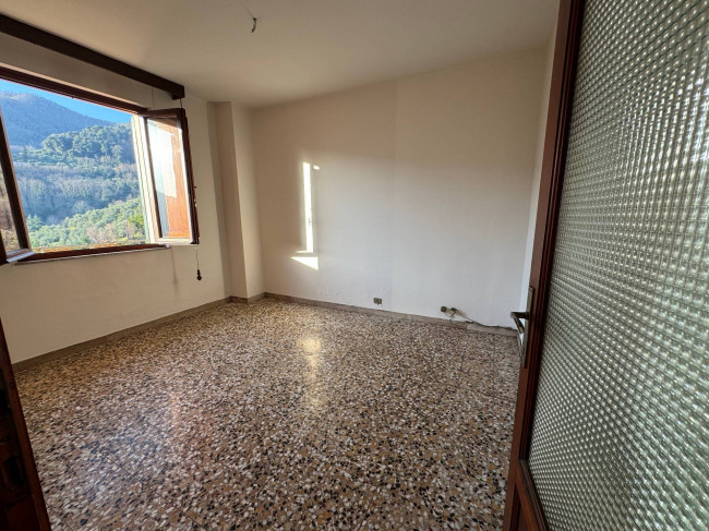 Frazione oneta . In zona silenziosa in un piccolo borgo antico , appartmento di circa 80 mq. posto al piano secondo con affacci sulla vallata ,composto da un ampio soggiorno con camino , una cucina abitabile con balcone , 2 camere di cui una matrimoniale e una doppia , un bagno con doccia e ripostiglio; l'impianto di riscaldamento è autonomo con stufa a legna, infissi in legno , pavimenti in graniglia. L'immobile necessita di alcuni lavori di ristrutturazione ed è corredato a piano terra da due cantine con accesso dall'ingresso del palazzo, un deposito , un manufatto ad uso legnaia , ripostiglio e due posti auto nel piccolo parcheggio di fronte alla casa.Terreno nelle vicinanze con circa 60 piante di ulivied e circa 3 ettari ettari di terreno a balze . Un angolo di tranquillità nel verde a pochi chilometri da tutti i servizi.