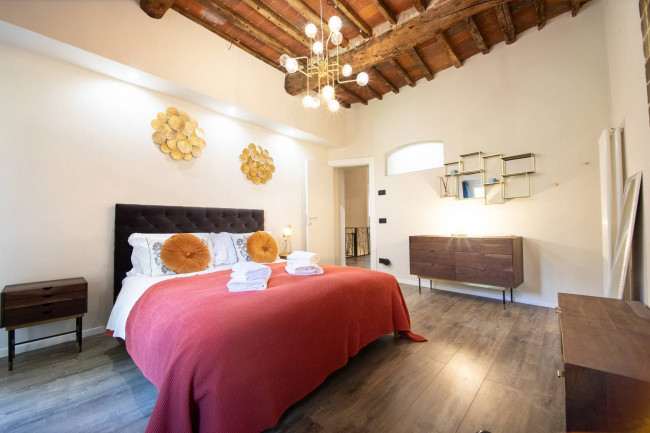 Appartamento completamente ristrutturato nel 2023, situato nel cuore del centro storico di Lucca, al primo piano di caratteristico palazzo. L' immobile ha una superficie totale di 110 metri quadri, ed è composto da una luminosa e spaziosa zona giorno, due camere da letto matrimoniali e un bagno moderno e funzionale. Al piano sottostante accessibile mediante scala interna troviamo una comoda e spaziosa lavanderia/ripostiglio. L' Appartamento è arredato con gusto e dotato di tutti i comfort necessari per una vita confortevole. Corredato da cantina al piano terreno accessibile dal vano scale e da ulteriori 40 mq di cantina da ristrutturare.